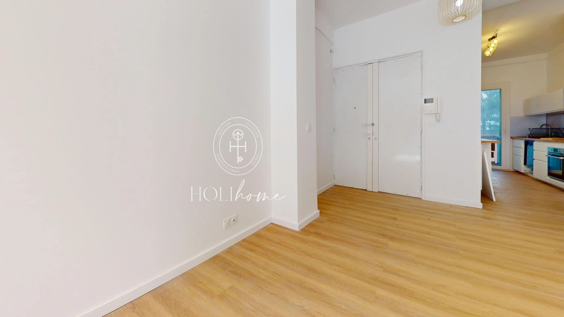 Il est composé d'un bel espace séjour lumineux avec accès à une terrasse, une cuisine neuve aménagée équipée en totalité ( plaque de cuisson, hotte, frigo four et lave-vaisselle) avec une loggia avec vue sur les jardins, trois chambres avec rangements, une salle de bain et un toilette.